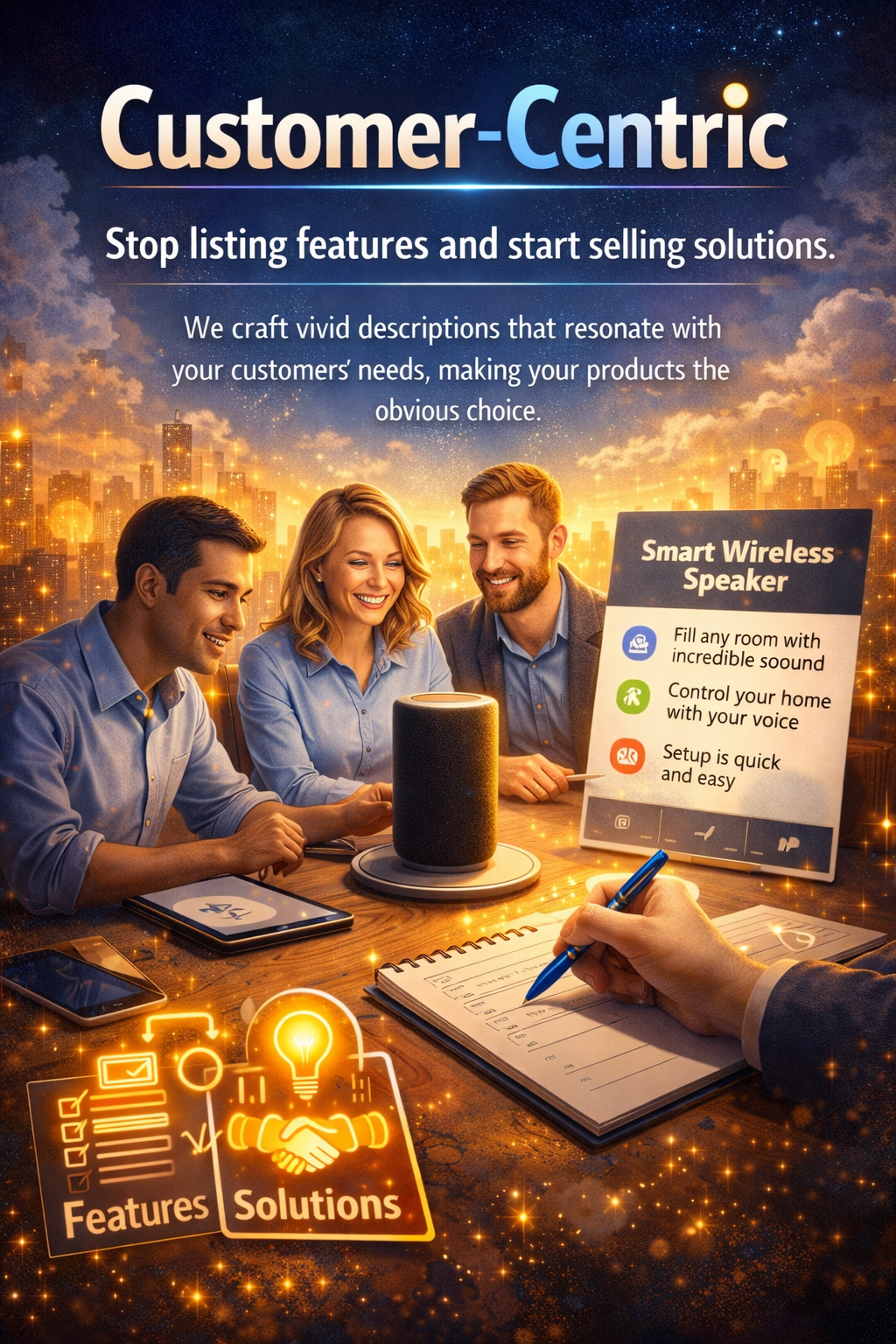Stop listing features and start selling solutions. We craft vivid descriptions that resonate with your customers’ needs, making your products the obvious choice.